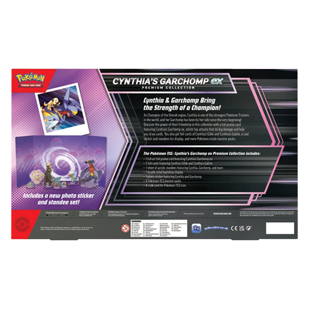 • 1 full-art foil promo card featuring Cynthia’s Garchomp ex