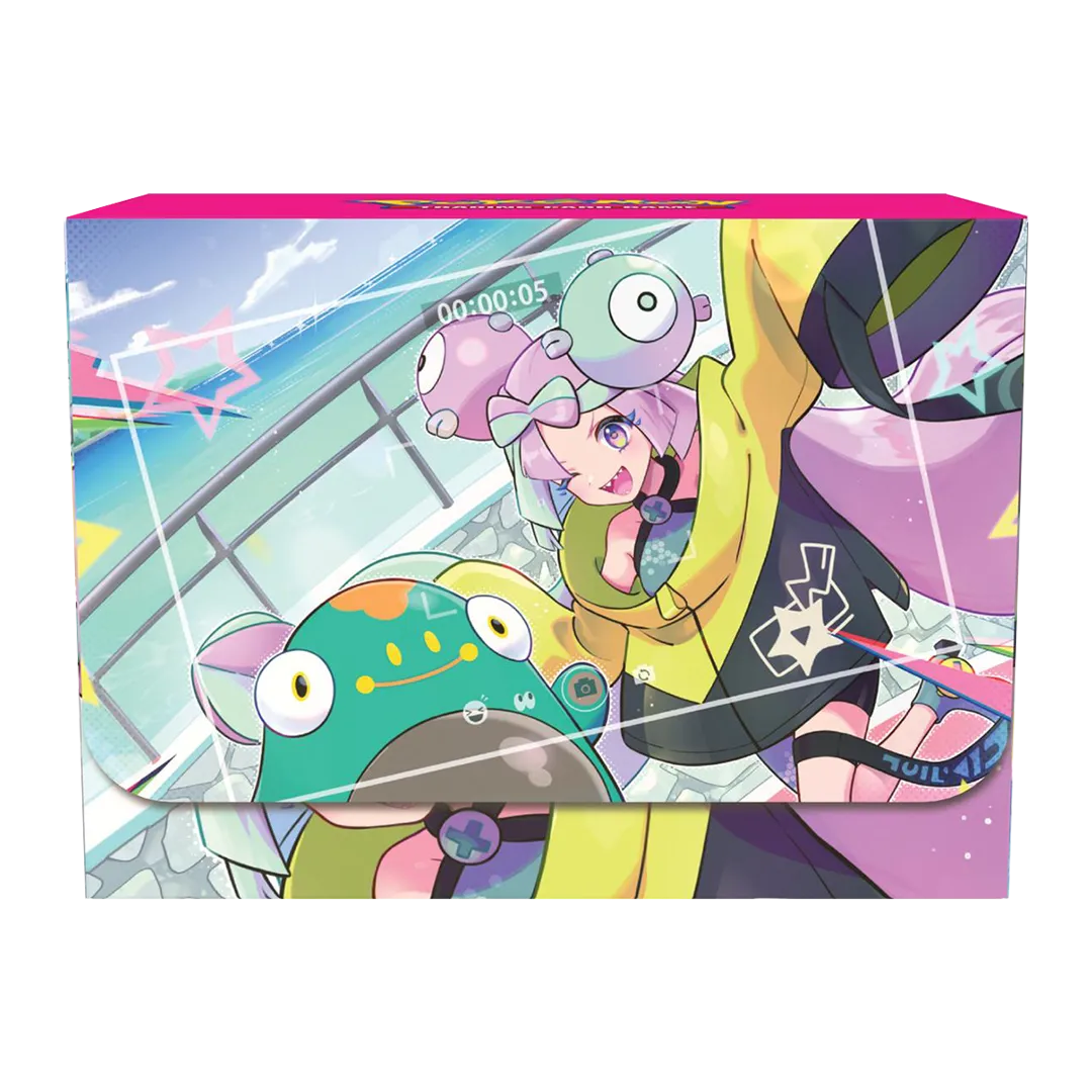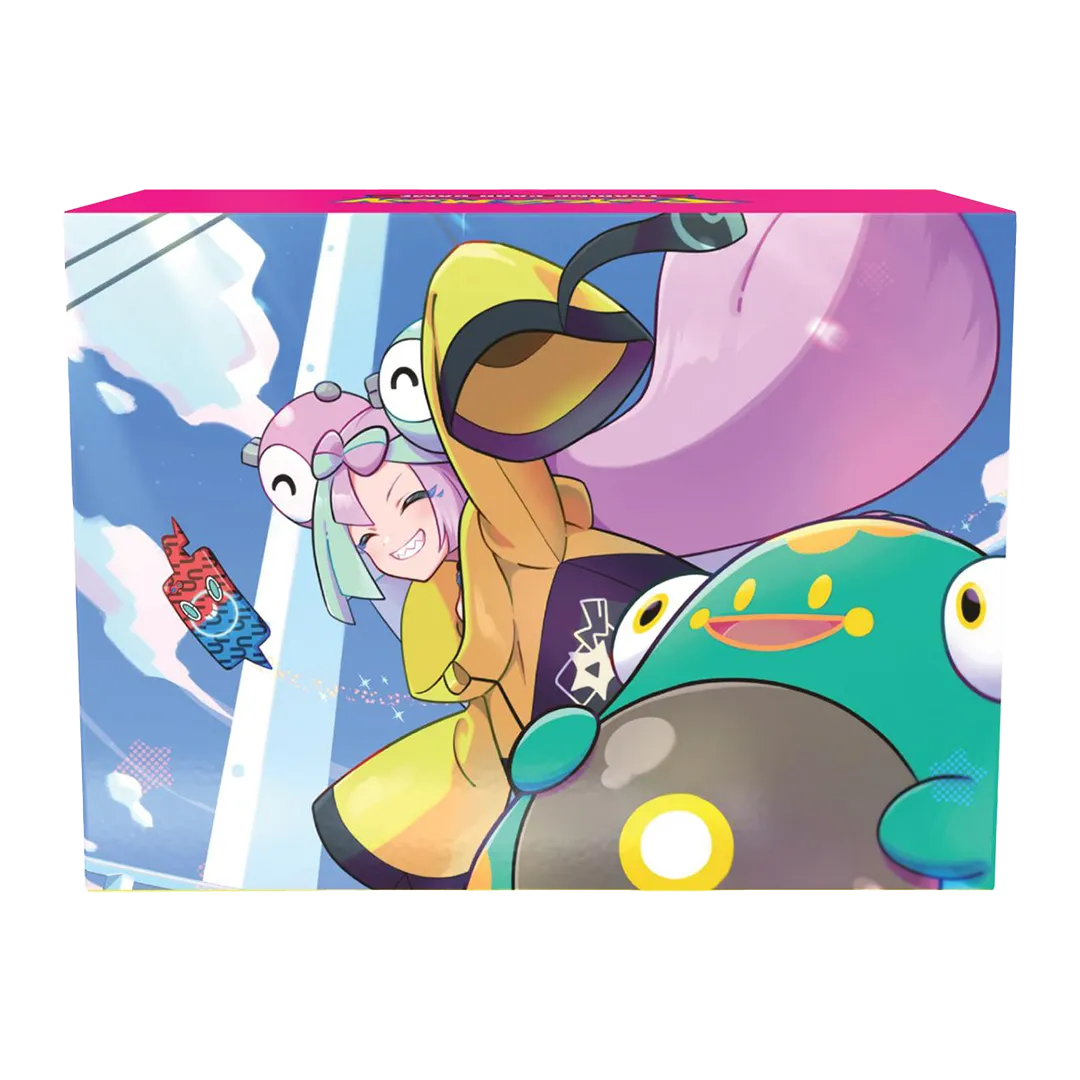 ’Ello, ’ello, hola! Ciao and bonjour! Levincia Gym Leader and mega-influencer Iono can catch your opponent in her Electroweb to help you make a huge comeback—and this competition-ready set comes with a full playset for your next deck! You’ll also find card sleeves, a deck box, and a collectible coin featuring Iono, along with booster packs, dice, and other accessories for playing the Pokémon TCG.