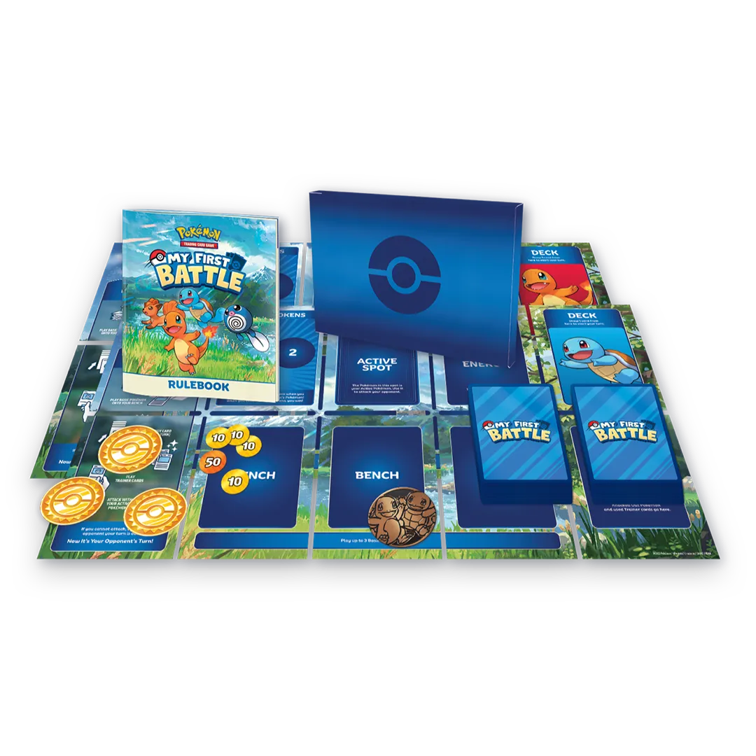 Your Pokémon TCG Adventure Starts Here! If you’ve always wanted to play the Pokémon Trading Card Game with family and friends, the Pokémon TCG: My First Battle set is the perfect introduction. With a streamlined game and foolproof guidance, you’ll be ready to train and battle together. Everything you need for two players is included!