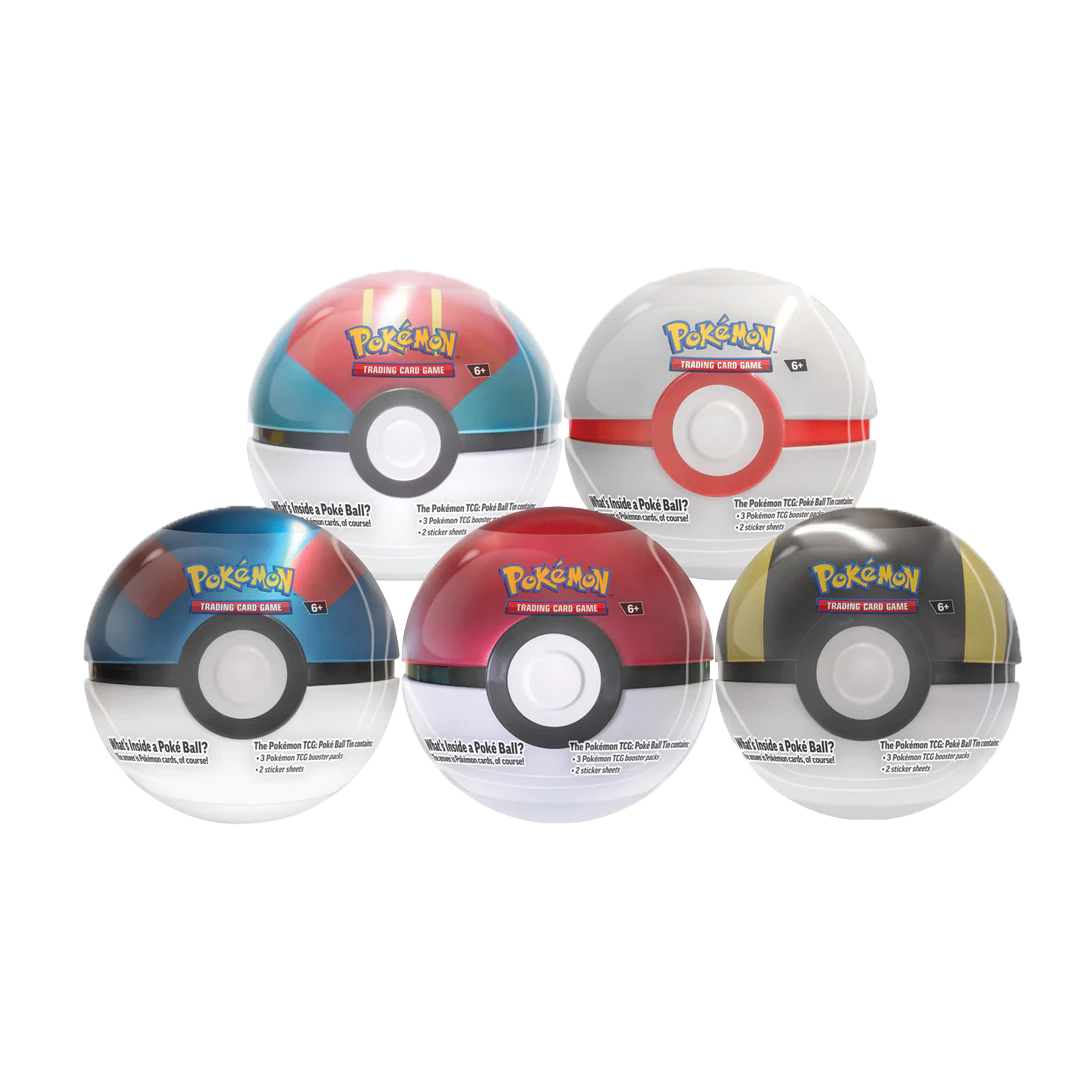 What’s Inside a Poké Ball? The answer is Pokémon cards, of course! This display contains 6 Poké Ball tins in total!