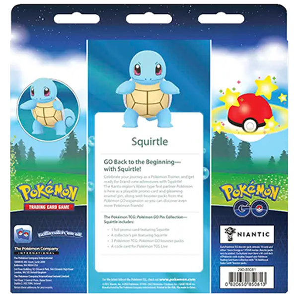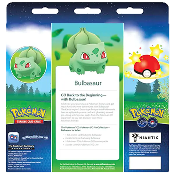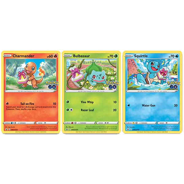 • A collector’s pin featuring either Charmander, Squirtle, or Bulbasaur
