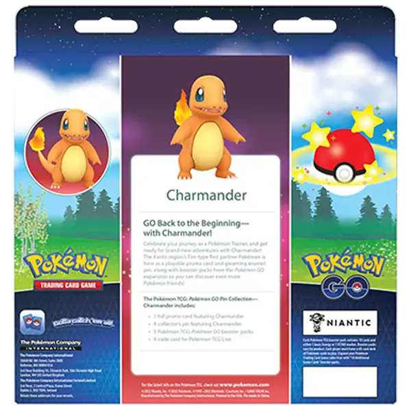 Celebrate your journey as a Pokémon Trainer, and get ready for brand-new adventures with Charmander! The Kanto region’s first partner Pokémon is here as a playable promo card and gleaming enamel pin, along with booster packs from the Pokémon GO expansion so you can discover even more Pokémon friends!