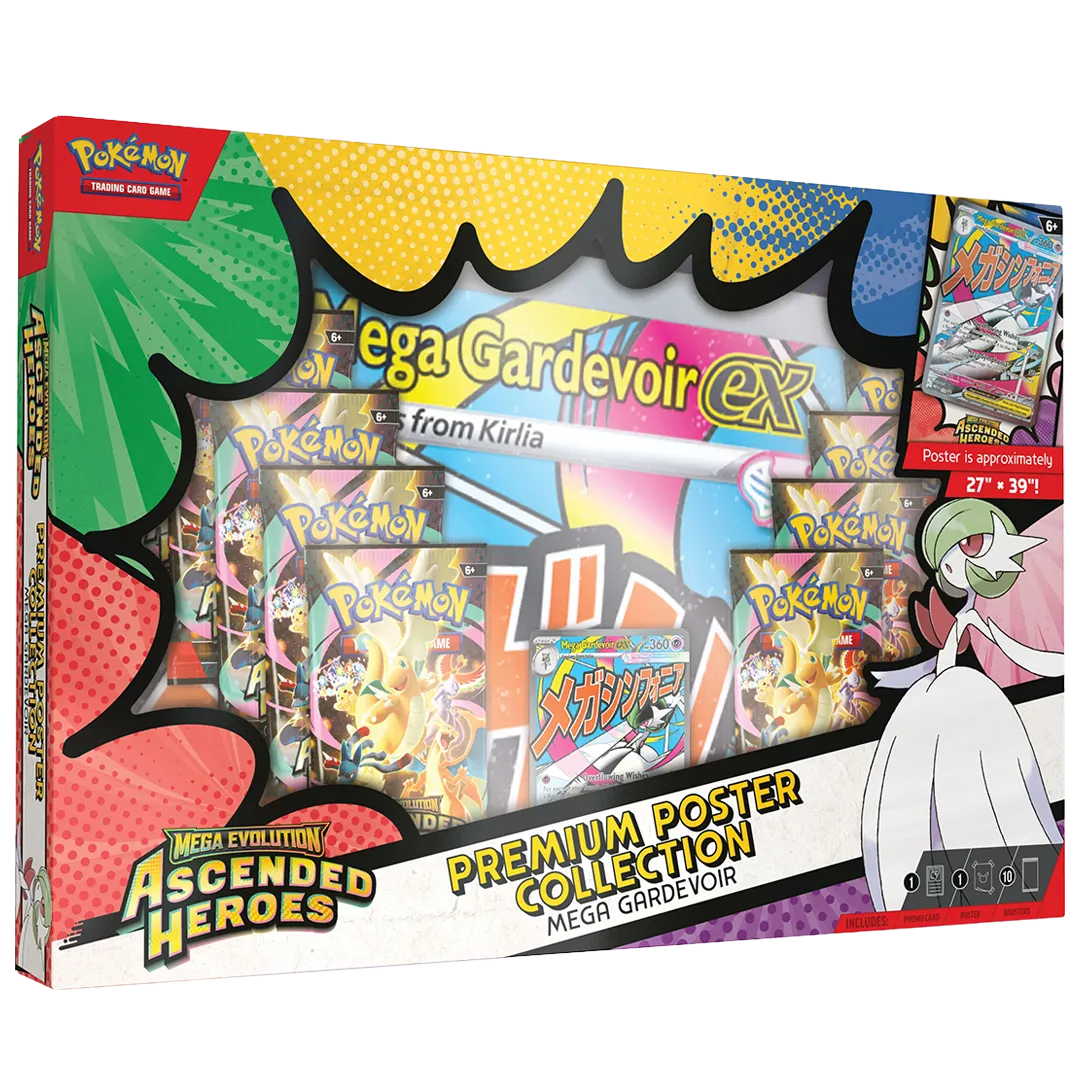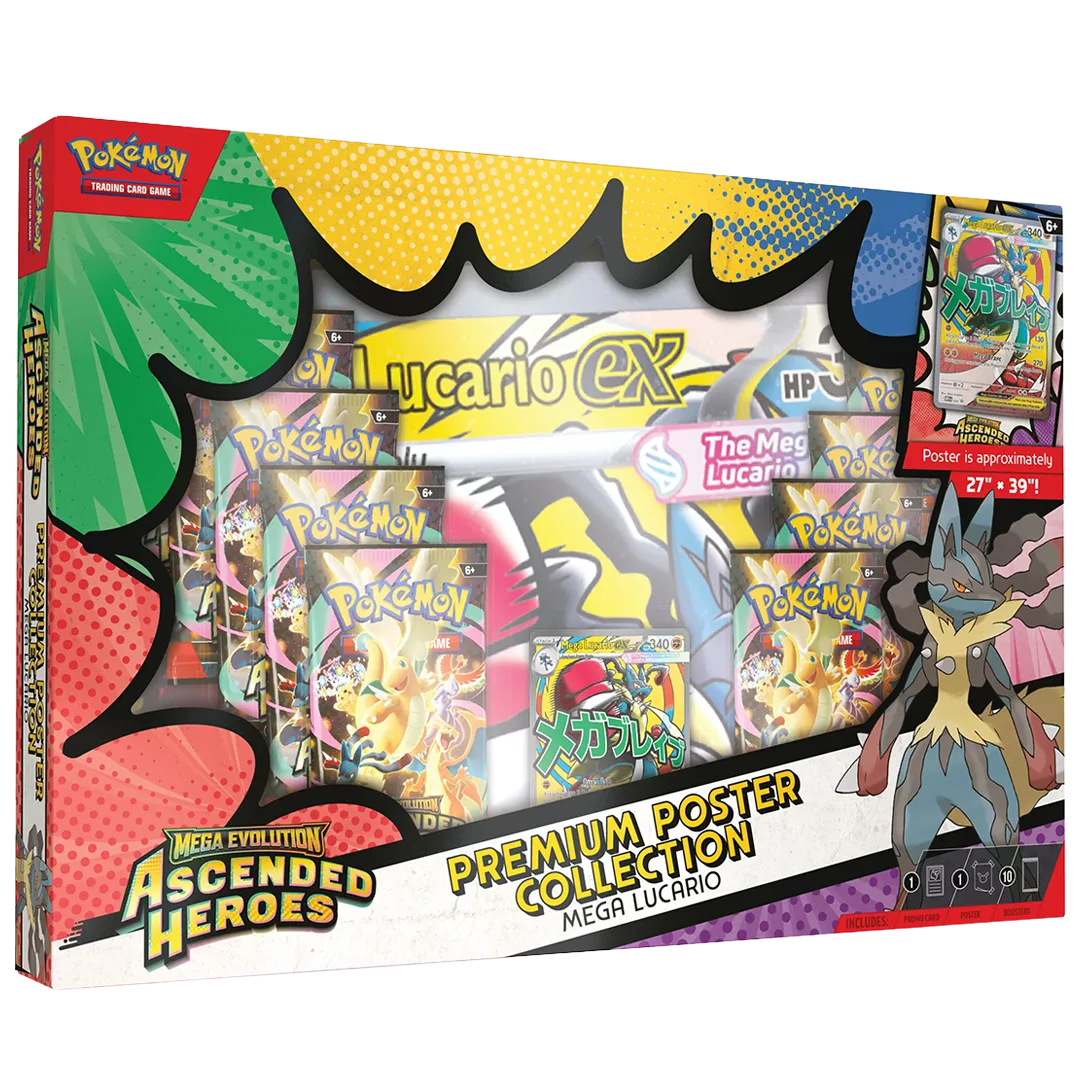 With strong attacks and big HP, Mega Lucario ex and Mega Gardevoir ex break through boundaries in battle! Team up with one of these powerful Mega Evolution Pok mon ex as a full-art foil promo card, then find even more Pok mon inside a stack of 10 booster packs from Mega Evolution—Ascended Heroes. You’ll also get a large poster showing off Mega Lucario or Mega Gardevoir and other Pok mon featured in this special expansion.