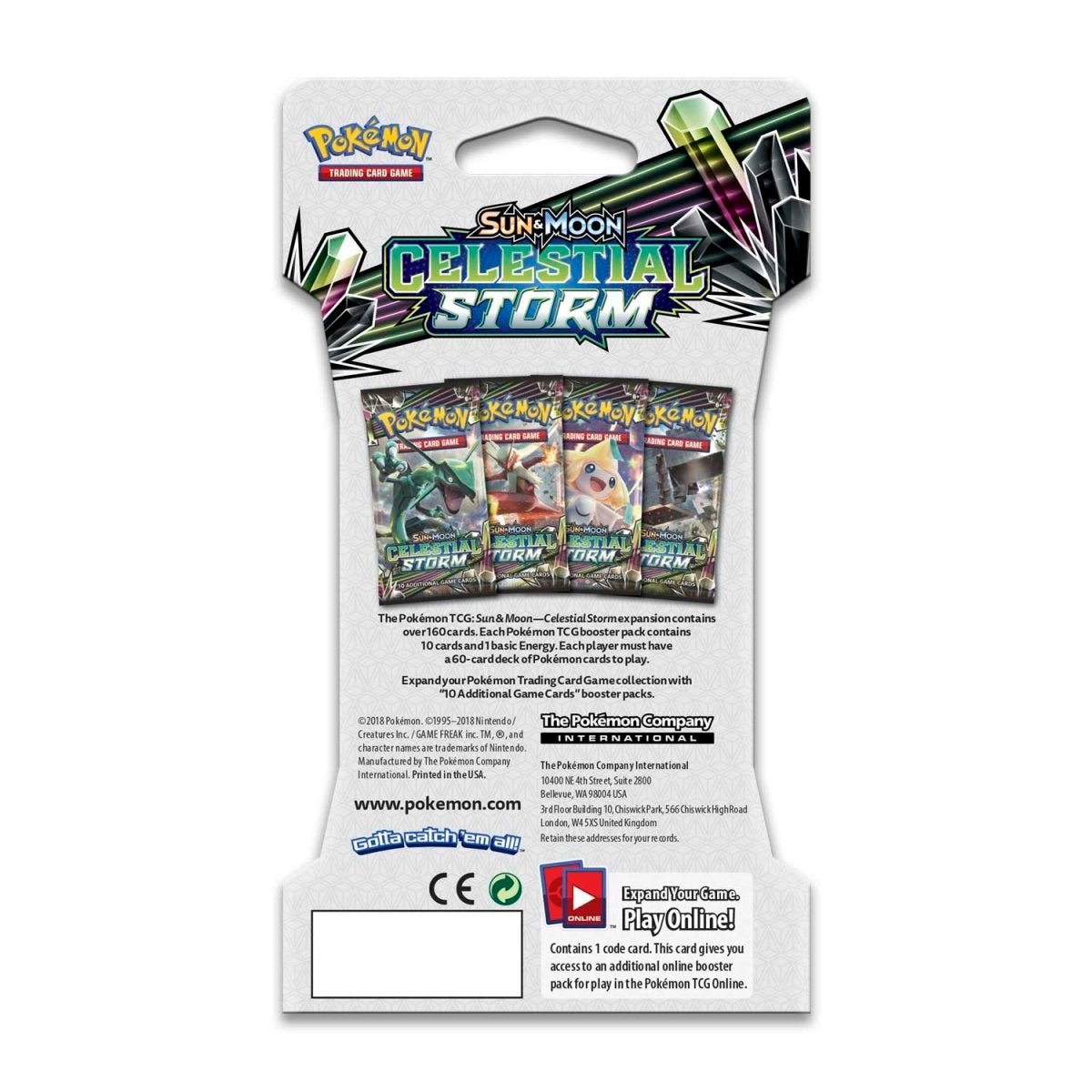 Watch out for the vortex! It’s a season of furious emerald storms and a sky alive with portents, as Pokémon and creatures from Ultra Space clash. Some ride the storm, and others defy it…face the winds of change head-on in the Pokémon TCG: Sun & Moon—Celestial Storm expansion!