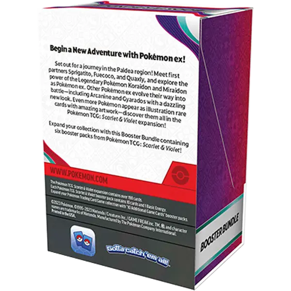 Set out for a journey in the Paldea region! Meet first partners Sprigatito, Fuecoco, and Quaxly, and explore the power of the Legendary Pokémon Koraidon and Miraidon as Pokémon ex. Other Pokémon ex evolve their way into battle—including Arcanine and Gyarados with a dazzling new look. Even more Pokémon appear as illustration rare cards with amazing artwork—discover them all in the Pokémon TCG: Scarlet & Violet expansion!