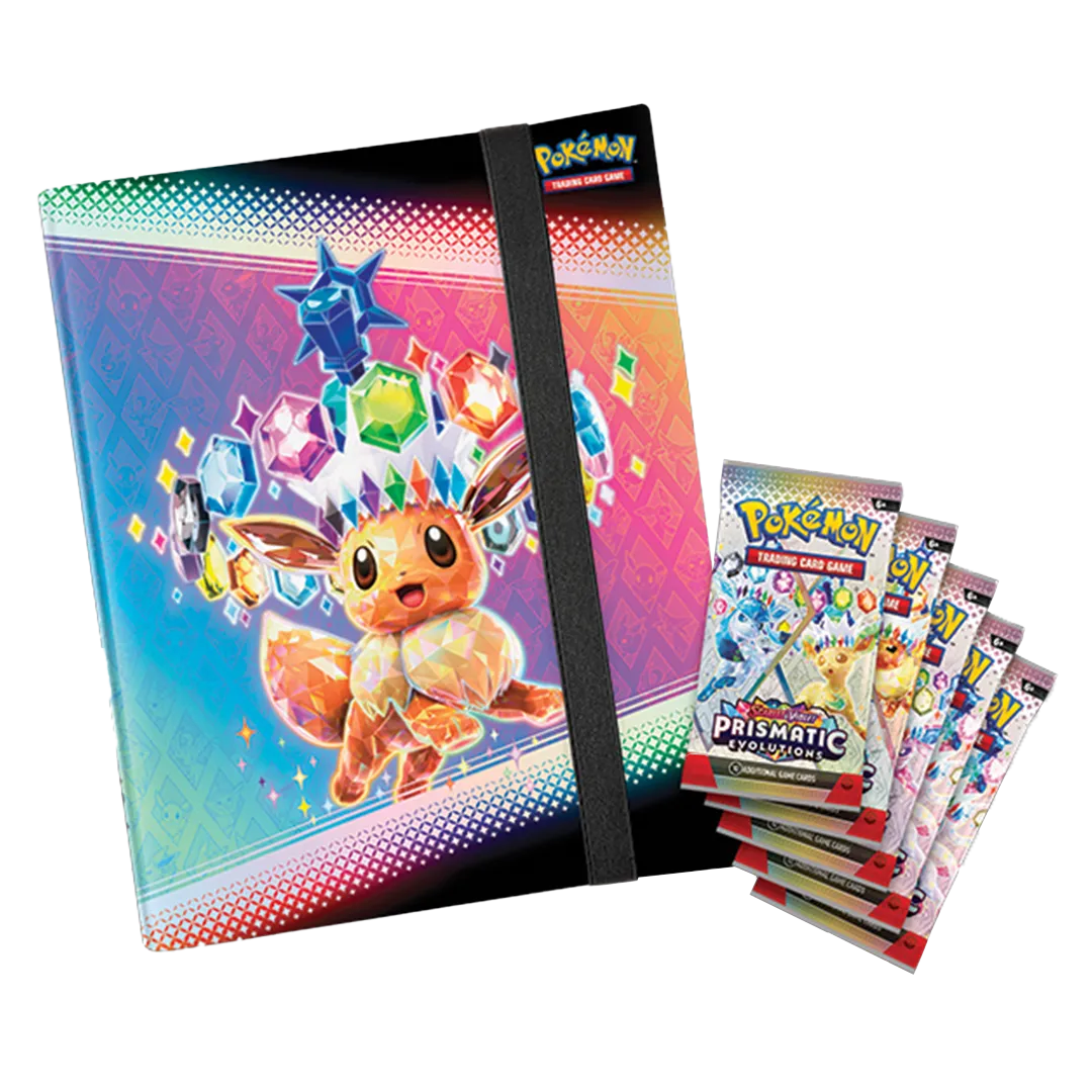 Just like a Pokédex, a binder makes it easy to keep track of your Pokémon collection! With this 9-pocket binder, you can show off up to 378 of your favorite Pokémon TCG cards. Get a head start filling it up with 5 booster packs from the special Scarlet & Violet—Prismatic Evolutions expansion!