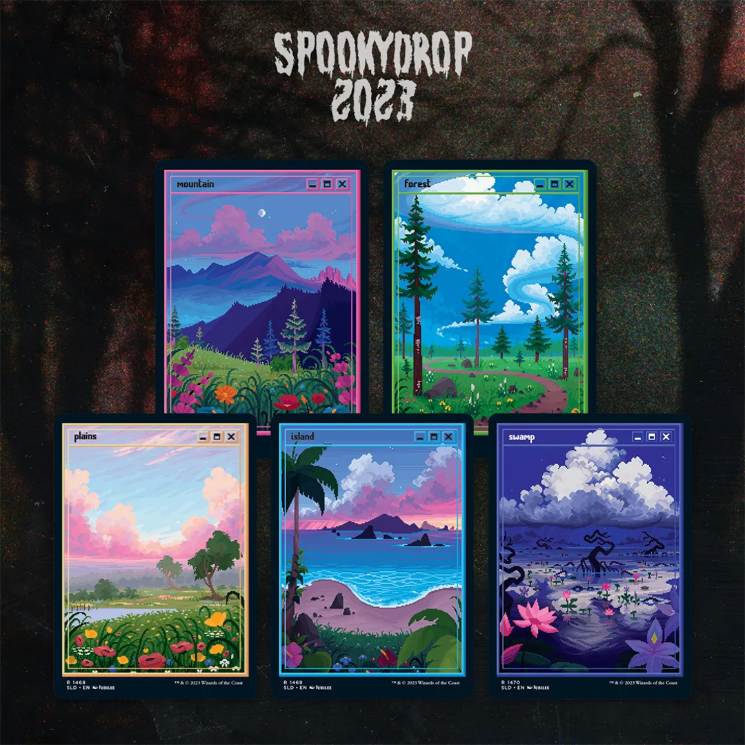 With pixel perfect art, the second set of lands from artist Jubilee are in low-res and high-demand. Just remember to keep them safe from your little bro’s sticky hands—WHY IS HE ALWAYS GOING IN YOUR ROOM?!?